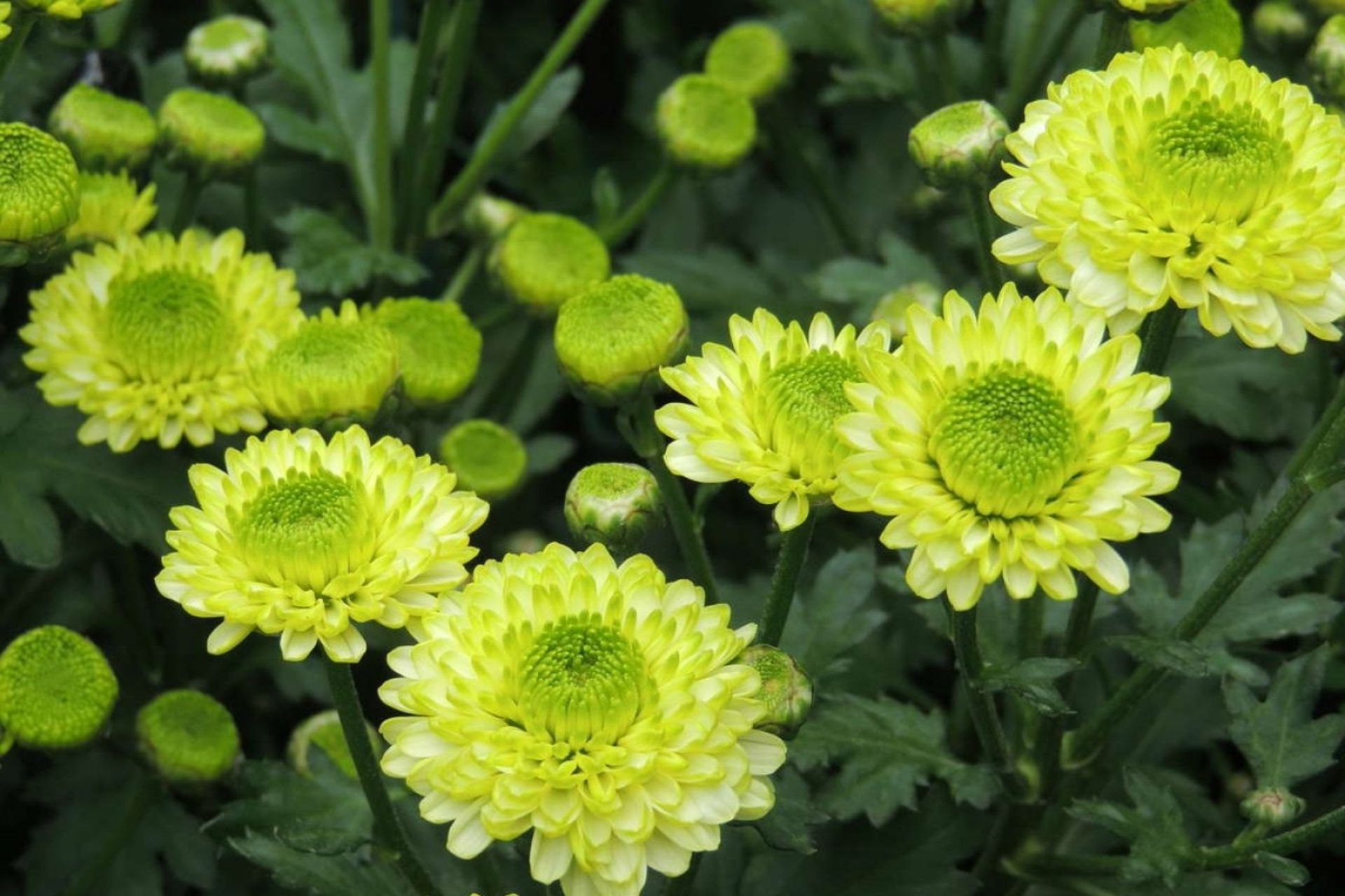 Màu sắc: Xanh lá non, xanh ngọc hoặc xanh lục đậm – màu sắc hiếm thấy trong các loài cúc.
