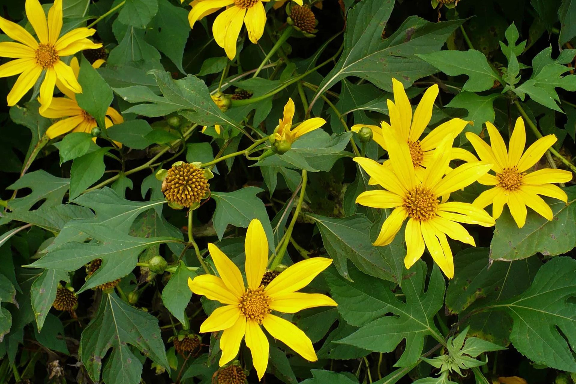 - Hình dáng: Hoa dã quỳ có cánh mỏng, dài, xòe rộng như những tia nắng mặt trời, thường mọc thành bụi lớn.