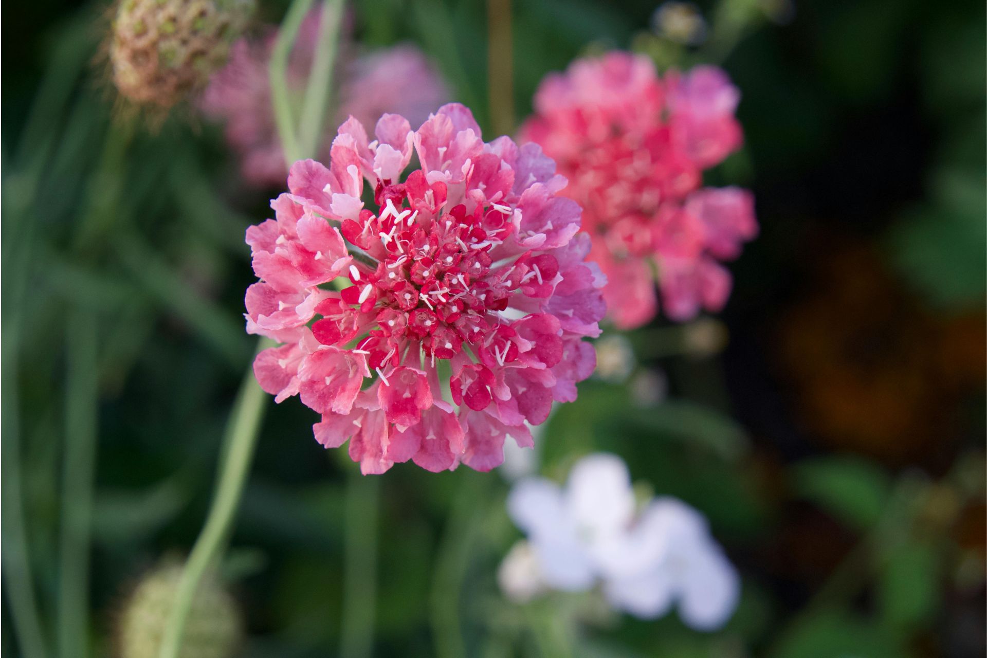 • Scabiosa hồng: Đại diện cho sự lãng mạn, tình yêu ngọt ngào và niềm vui.